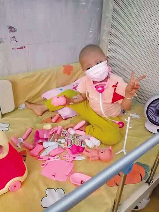 ■韦涵在病中,最喜欢玩“扮医生”的过家家。 |