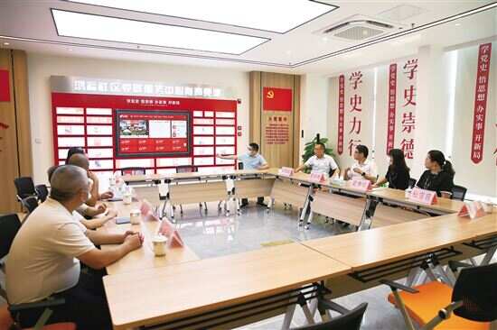 “党建+楼宇商圈”模式实现共治共享共赢 新快报讯 8月4日上午,南城街道鸿福社区总部基地党群服务中心举行揭牌仪式。街道领导郭玮珉、梁秀仪,鸿福社区、非公有制经济组织和社会组织委员会、寰宇汇金物业公司相关负责人等参加揭牌仪式。 当日上午10点,揭牌仪式在寰宇汇金中心大厦一楼举行。郭玮珉、梁秀仪等为总部基地党群服务中心揭牌。揭牌仪式结束后,全体人员前往党群服务中心参观并召开茶话会交流。 郭玮珉表示,楼宇商圈党建和楼宇商圈经济发展密不可分。楼宇商圈党建是楼宇商圈经济发展的政治保障,推动楼宇商圈党建共建共融有助于提高商圈治理能力、促进楼宇经济高质量发展,实现区域繁荣。总部基地作为南城街道乃至东莞市城市发展的重要片区,建设鸿福社区总部基地党群服务中心,全面打造“资源融合、阵地融合、服务融合、管理融合”的“党建+楼宇商圈”模式,将实现共治共享共赢。 郭玮珉强调,鸿福社区要继续深入推进楼宇商圈发展与治理工作,坚持以发展为目标,以服务为抓手,以群众满意为标准,持续深化党建引领,使党群服务中心成为团结群众的核心、教育党员的学校、攻坚克难的堡垒,推动党建工作与基层治理互融互促,把党建工作成效转化为市域社会治理现代化效能,为全面提高街道基层党建工作水平,推动“湾区都市、品质东莞”迈上新台阶作出新的更大贡献。 据了解,南城街道鸿福社区总部基地党群服务中心从筹建到落成,历时1年。党群服务中心位于CBD位置寰宇汇金中心大厦十一楼,目前设有便民服务台、图书室、休闲吧、谈心室、会议室、党员活动室,并配备了相关设施。(朱佩珊 张书贤)
