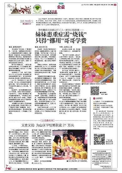 妹妹患重症需“烧钱” 只得“挪用”哥哥学费