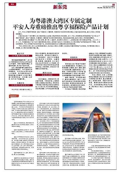 为粤港澳大湾区专属定制 平安人寿重磅推出粤享福保险产品计划