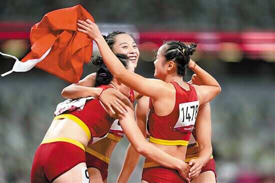 4×100米接力·决赛 中国女队42秒71第六,中国男队37秒79第四 北京时间昨晚,在东京奥运会4×100米的两场决赛中,中国女队以42秒71获得了第六名,中国男队以37秒79获得了第四名。虽然都没能拿到奖牌,但都实现了自我突破,创造了最佳成绩。 ■新快报记者 王敌 仅差0.09秒 中国男队和铜牌仅一步之遥 预赛中,中国男队以小组头名直接晋级决赛。决赛中,中国队使用了和预赛一样的战术——汤星强持棒起跑、谢震业承上启下、苏炳添圆月弯刀、吴智强直道冲刺。这套已经磨合得越发熟练的阵容在比赛中发挥得相当顺畅。 比赛开始后,第一棒汤星强的启动非常出色,第二棒谢震业的节奏也非常好,第三棒的苏炳添展现了“圆月弯刀”的特质,最后的吴智强同样发挥到位,顶住了牙买加选手的冲击,中国队最终跑出了37秒79的好成绩,在获得了赛事第四名的同时,也追平了全国纪录。 事实上,吴智强在冲线时和加拿大队的德格拉塞只差了一步,如果苏炳添和吴智强在交接棒上做得再好一点,中国队完全有机会冲击奖牌。在最终成绩上,中国队(37秒79)其实只比第三名的加拿大队(37秒70)慢了0.09秒而已。 赛后,苏炳添表示,在交接棒方面还是有些小失误,因为两面都有人,所以他跑得有些僵。吴智强说:“虽然我们有点小失误,但我们已经尽可能弥补了并且做到最好了。”谢震业和汤星强也表示,无论如何,跑到第四名也没什么后悔的了。 男子4×100米的冠军为意大利队(37秒50),亚军为英国队(37秒51)。决赛只有6队完赛,东道主日本队交接棒失误,加纳队则是因为犯规丧失了比赛资格。 时隔21年 中国女队再登接力决赛舞台 对中国田径来说,女子4×100米决赛真的是久违了。中国女子接力队此前唯一一次参加奥运会决赛,还要追溯到2000年的悉尼奥运会。当时,中国女队获得了第七名。 此后多届奥运会,中国队都无法跻身决赛。2016年里约奥运会,中国女队一度拿到了决赛权,但因为美国女队的重赛要求被通过,中国女队被迫“淘汰”。正因于此,能够在东京奥运会上参加决赛,中国女队也算是出了一口气。 昨晚的决赛,中国队位处最外侧的第九道,4个棒次分别是梁小静、葛曼棋、黄瑰芬和韦永丽。鸣枪后,梁小静迅速启动,较快地与葛曼棋完成了交接;葛曼棋在第二棒努力缩小了与其他选手的差距;第三棒,黄瑰芬在弯道上也没有被继续甩开;第四棒的韦永丽在接棒时处在第七位,但她在直道全力冲刺并最终在冲过终点时超越了法国队,获得了第六名。和21年前相比,中国女队在接力赛场上又提升了一名,这也是中国队在奥运会女子4×100米项目中的最佳成绩。赛后,四朵金花开心地披着国旗合影,并且表示非常开心能够以第六名完赛。 女子4×100米的冠、亚、季军分别是牙买加队(41秒02)、美国队(41秒45)和英国队(41秒88)。荷兰队由于交接棒失误而未能完成比赛。 现场直击 暨大暑假留校师生为苏教授加油呐喊 新快报讯 记者王娟 通讯员李伟苗报道 “中国队,加油!苏炳添,加油!”昨晚,苏炳添所在的暨南大学里,该校暑期留校师生相聚一堂,一起见证决赛时刻。 为了给苏教授加油,不少留校的暨大师生,早早就来到邵逸夫体育馆一楼电教室,等候着4×100米的接力赛,在率先进行的女子接力比赛中,大家一起呐喊加油,气氛热烈。到男子接力队亮相时,苏教授的出现更让现场师生们兴奋不已。比赛中,师生们整齐的加油声贯穿始终,“中国队,加油”“苏炳添,加油!”的声音一浪高过一浪,不少同学在苏炳添接力跑和中国队冲刺时喊到声音嘶哑。 赛后,现场观看比赛的同学们纷纷表示难掩心中的激动之情,更期待苏神早日回到暨大,能和他面对面交流和沟通。 记者从暨南大学了解到,苏炳添在该校就读期间就创造过校运会纪录。他曾积极报名参加过2011年、2013年的暨南大学校运会,并作为运动员代表进行宣誓。在2013年,尽管他脚上有伤,仍坚持认真地完成了100米的比赛,并以10.48秒的成绩打破了校运会纪录。据悉,这一成绩至今仍是暨南大学校运会百米比赛最高纪录。 据悉,学校将根据苏老师的安排,尽力争取让更多暨南学子有机会与苏炳添面对面交流,具体会进一步与苏炳添沟通确认。