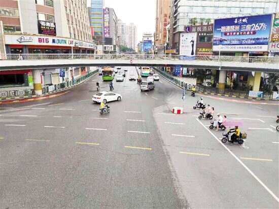 ■天河体育中心附近的十字路口人行横道上,电动车数量不少,大部分车主都佩戴了头盔。 |