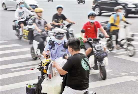 ■近日,广州交警严查外卖行业电动自行车交通违法行为。 |
