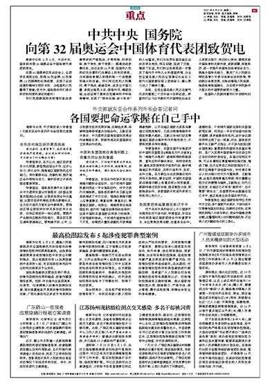 中共中央 国务院 向第32届奥运会中国体育代表团致贺电