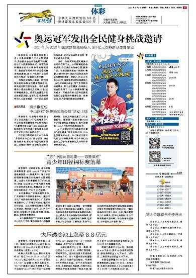 2011年至2020年国家体育总局投入184亿元支持群众体育事业 新快报讯 记者陆妍思报道 8月8日是我国第十三个全民健身日,东京奥运会也在当晚落下帷幕,在这个大家都跃跃欲试、想要在各种健