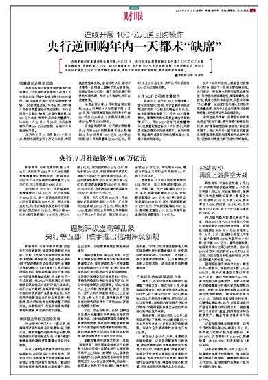 连续开展100亿元逆回购操作 为维护银行体系流动性合理充裕,8月11日,央行公告以利率招标方式开展了100亿元7天期逆回购操作,中标利率2.20%。Wind数据显示,当天有100亿元逆回购