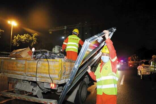 ■昨晚,鹤洞大桥进行围蔽检修。 |