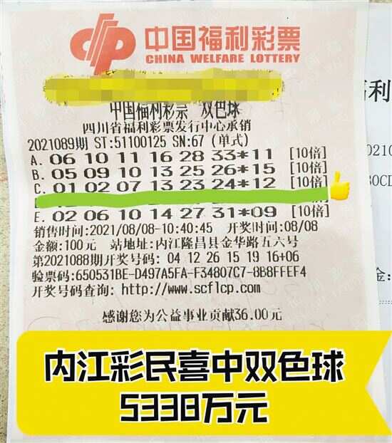 新快报讯 记者陆妍思 通讯员何奎报道 双色球第21089期一等奖井喷51注,四川彩民揽获11注,其中内江市隆昌市彩民中得10注一等奖,总奖金金额高达5338万元。8月10日上午,中奖彩民就带着老婆和女婿来领奖了。中奖彩民50岁出头,个子不算高,手里拿着包和手机,轻松上阵来领奖,脸上笑呵呵的,进门就说:来兑大奖了,兑完就心安了。 每次买彩都是机选 说起买彩票,这位彩民摆摆手表示没什么经验之谈。“买彩票快4年了,从来不研究号码,看不懂那些走势图,每次都是机选,感觉好就多打几倍,感觉不好就买10元”。8月8日上午,趁着上午天气凉快,他出去找朋友谈一个项目,路过经常去的那家彩票店,顺手让销售员给机选了5注,并且10倍倍投。这种投注方式对他来说太习以为常了。据站点销售员介绍,中奖彩民非常佛系,每次机选的号码基本不看,拿着票就走,在投注站停留也不会超过五分钟。 发现中奖继续上班 被问到自己中奖是什么心情,中奖彩民说:“真的很平静,以前也幻想过中500万可能要激动得跳起来,更何况5000多万。结果真的中奖了,反而很平静很冷静。”8月9日周一早上,他一如既往地去上班,休息的时候把彩票拿出来对着网上的开奖信息核对。一晃眼,觉得自己好像中了二等奖,又仔细看发现所有数字都对上了,中一等奖了。赶紧打开电脑找到中国福利彩票官方网站,看着权威的开奖数据,才确信自己中了一等奖,并且还是10个一等奖!确认了这一切以后,他把彩票放回包里,继续上班。 照常生活锦上添花 谈起这笔巨额奖金的规划,中奖彩民的老婆笑着说:“还是照常生活呗,我们家本来也宽裕,一家四口生活开支都是足够的了。现在有了这笔奖金,就希望我们能好好地规划它,让我们的生活锦上添花。” 中奖彩民马上展现出四川男人可爱的“耙耳朵”那一面,赶紧说:“既然现在来成都领奖了,我还是想带老婆去逛逛商场,她喜欢的我都可以给她买。”