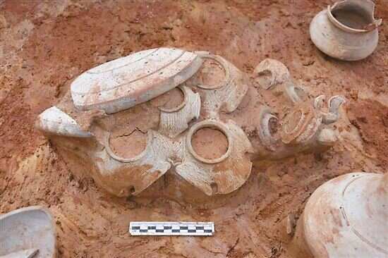 ■陶鸮形五联罐出露情况 |