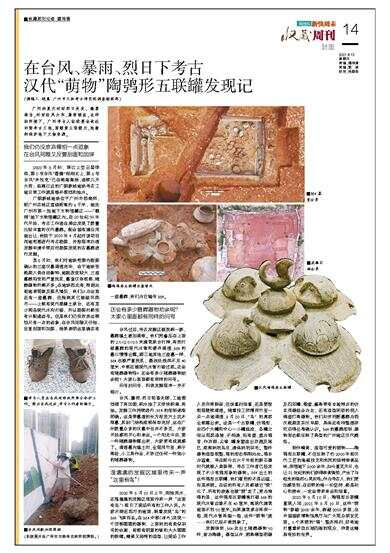 在台风、暴雨、烈日下考古 汉代“萌物”陶鸮形五联罐发现记