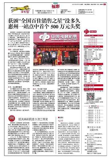 获颁“全国百佳销售之星”没多久 惠州一站点中首个500万元头奖