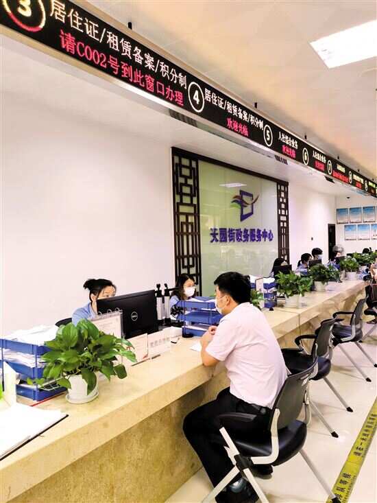 ■天河区石牌街党群服务中心,来穗人员在居住证窗口办事。 |