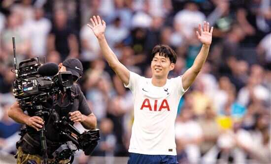 ■孙兴慜接受球迷的欢呼。 新华社发 |