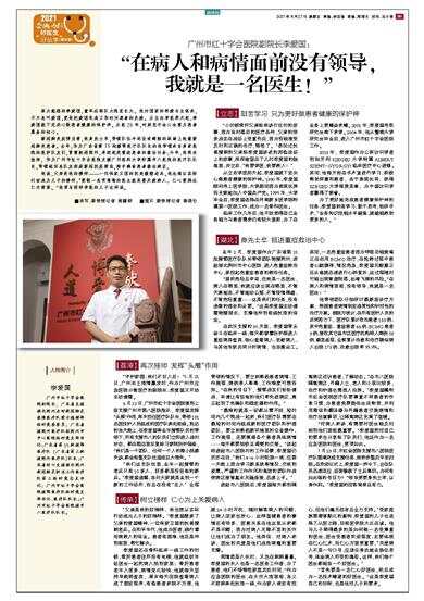 广州市红十字会医院副院长李爱国: 高大魁梧的李爱国,童年在部队大院里长大。他对国家的热爱与生俱来,不只名叫爱国,更是把爱国化成工作时对患者的关爱。从立志学医那天起,李爱国就下定决心做患者健