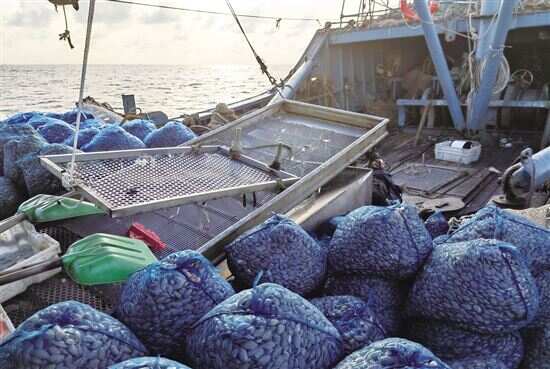 ■被查获的渔船上堆满了贝壳类渔获物。 通讯员供图 |