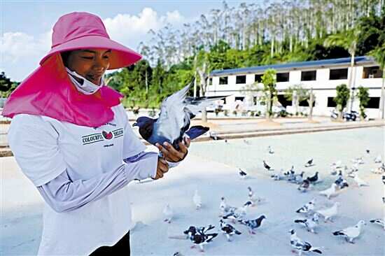 ■在肇庆市德庆县播植镇,良鸽园的鸽子汇展广场上有不少鸽子,供人们观赏。 |