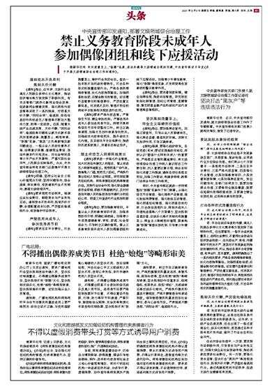 禁止义务教育阶段未成年人 参加偶像团组和线下应援活动