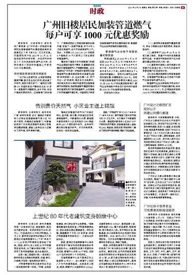 新快报讯 记者李佳文 通讯员成广聚报道 《广州市进一步推进旧楼居民加装管道燃气优惠奖励政策的实施意见》(下称《意见》)已正式实施。旧楼居民用户在2023年12月31日前完成用气申报手续,并在用