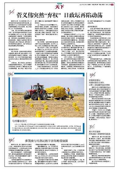据新华社电 日本首相菅义伟3日突然宣布放弃追求连任自民党总裁。这意味着本月29日自民党选举产生的新总裁将接替菅义伟出任首相,菅义伟政府上台一年后即告结束。 之前,菅义伟不断放出竞选连任的风