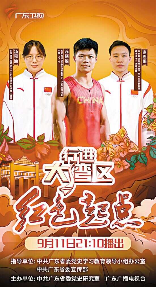 奥运健儿畅谈节目《力行传承》 新快报讯 记者梁燕芬报道 《行进大湾区》“红色起点”收官之作《力行传承》将于本周六在广东卫视播出,那一段段革命先烈奋战沙场、为国捐躯的故事,深深感动了同样在体育赛场上为国争光的体育健儿们。刚在东京奥运会上以9秒83刷新男子100米亚洲纪录的中国“飞人” 苏炳添看完节目说:“我们都流淌着不服输的红色基因!” 《行进大湾区》“红色起点”系列节目行进于红色革命遗址,追溯南粤百年党史,呈现先烈奋进故事。收官篇《力行传承》通过“闪亮坐标”“无名丰碑”“奋楫扬帆”三大篇章,开启一场跨越百年时空的红色盛典。近日,在体育赛场上为国争光的体育健儿们,在观看完《行进大湾区》节目后,也深受感动。苏炳添说,看完节目对杨殷烈士有着天生的熟悉感和亲切感:“我们都是中山人,中山人向来敢为天下先。百年前,杨殷肩负的每一个任务都是难啃的硬骨头,然而他不屈不挠,哪怕牺牲性命,也要迎难而上,这种精神值得我们学习。或许我和杨殷烈士一样,血液里都流淌着不服输的基因,曾经我们觉得‘9秒85’是黄种人的极限,但我打破了它。以愚公移山的精神攻坚克难,就没有攻不下的山头,迈不过的沟坎!” 东京奥运会游泳女子4×200米自由泳接力冠军汤慕涵看完《行进大湾区》之《胜利营救》后说:“没有无数共产党员高效有力的合作,这场伟大的营救就不可能胜利。”东京奥运会跳水男子双人三米板冠军、跳水男子单人三米板冠军谢思埸曾经历两次严重的脚伤,几乎要告别跳水生涯,但最终站上了冠军领奖台,他分享感受时说:“我为什么要这样坚持?看完节目之后,我找到了答案,是梦之队的荣誉,更是一名党员的初心。”