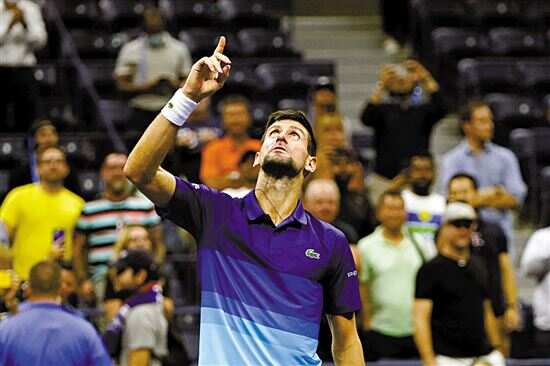 ■塞尔维亚选手德约科维奇在赛后庆祝。新华社发 |