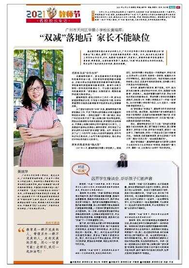 广州市天河区华景小学校长黄瑞萍:“双减”落地后 家长不能缺位