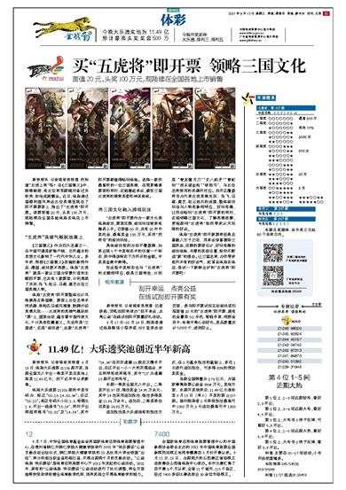 面值20元,头奖100万元,现陆续在全国各地上市销售 新快报讯 记者陆妍思报道 你知道“五虎上将”吗?在《三国演义》中,群雄割据,有五位将军跟随刘备过关斩将,助他成就霸业。近日,体彩通过国
