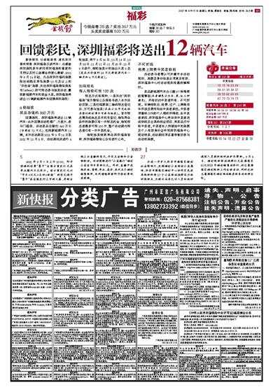 新快报讯 记者陆妍思 通讯员邓雪玲报道 深圳福彩又送汽车!为感谢深圳彩民多年来对深圳福彩的喜爱和支持以及对公益事业的爱心奉献,2021年9月16日起,凡在深圳市福利彩票投注站购买单张彩票10元及