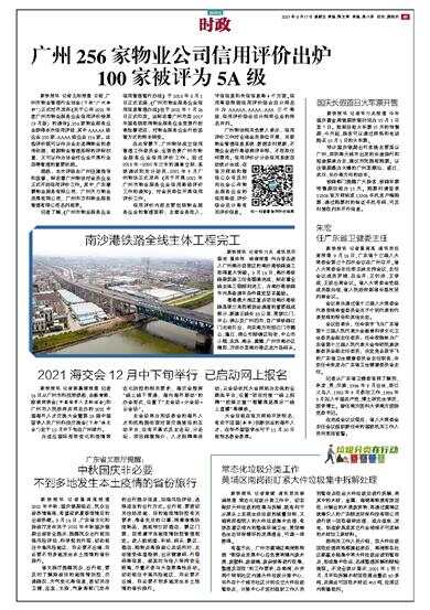 新快报讯 记者王彤报道 日前,广州市物业管理行业协会(下称“广州物协”)正式对外发布《关于公布2021年度广州市物业服务企业信用评价结果(9月版)的通告》,256家物业服务企业获得本次信用评级,