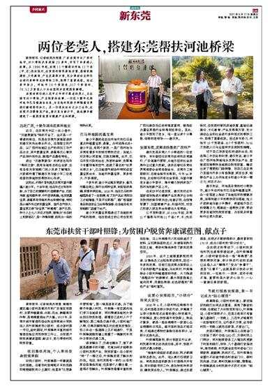 新快报讯 记者杨英杰报道 广东东莞市与广西河池市,对口帮扶关系延续20多年,书写了许多感人故事。从1996年起,东莞11个镇街与河池11个县(市、区)先后结对,在贫困村移民易地安置、基础设施建设