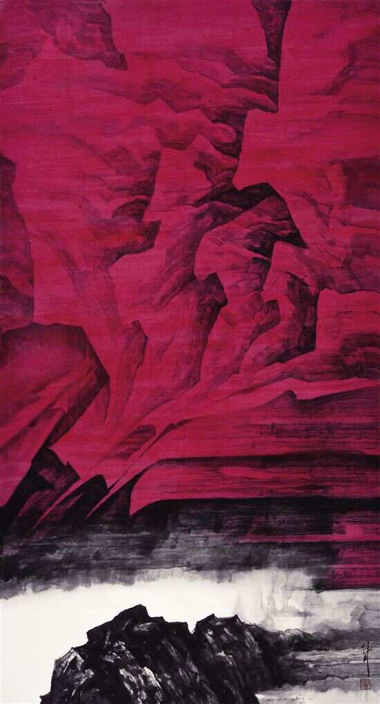 百幅井冈山意象山水作品,献礼中国共产党建党百年。2021年9月12日,“险处不须看:刘境奇意象山水画展”在广州图书馆开幕。这是现任广州城建职业学院艺术与设计学院院长的刘境奇,近年来的首个大型个展。他笔下的井冈山-黄洋界,构成了革命摇篮的一幅长卷;而红色晕染的独特效果,作为其作品的一个强烈图示符号,以磅礴、雄浑又独具装饰匠心的个人风格,将观众带进了他数十年艺术追寻的精神深处。 近日,收藏周刊记者对刘境奇进行了专访。 ■收藏周刊记者 潘玮倩 人物介绍 刘境奇 1958年出生于江西吉安市,毕业于无锡轻工大学造型美术专业,中国美协会员,现任广州城建职业学院艺术与设计学院院长。作品曾多次入选全国美展等重要展览并获奖。 红色晕染 成为我作品的一个图示符号 收藏周刊:刘先生您好,“险处不须看——刘境奇意象山水画展”日前在广州图书馆开幕,备受各界瞩目。请问,您这百幅井冈山意象山水画,创作于什么时候? 刘境奇:是2016年底到2021年6月,近五年时间创作完成的。 收藏周刊:这批画作所呈现的地域,是在哪里?您为何会对这部分题材情有独钟? 刘境奇:作品呈现地是我的家乡井冈山。我出生在井冈山脚下的吉安市,1975年高中毕业时与大多数同龄人一样,响应国家号召,来到革命老区吉安县做下乡知青。由于家传渊源和耳濡目染,掌握了较好的美术功底,加之自己勤奋努力,在1976年至1980年的四年多的时间,先后借调到江西东古第二次反围剿纪念馆、宁冈县革命烈士纪念馆、吉安县革命烈士纪念馆,从事革命斗争主题画创作和复原烈士遗像工作。为体验生活和收集主题画创作素材,走访了井冈山的许多村落,崎岖的山路上留下了难忘的记忆,也汇聚成一幅幅峥嵘岁月的画面…… 虽然这段经历已经过去40多年,但对心灵的冲击已直抵精神深层,我笔下的山水,就是由内心的感觉、情绪、意念和信仰演绎为形式主体,潜意识的物象世界已经与自然景观剥离开来,画面成为追随生活理想的仪式,而向生命深处驱进。无论山峦叠嶂,还是曲径溪流,抑或峰仞挺拔,都在诉说中表现着深沉的红色情怀和信仰寄托,彰显出诗意的壮美与能量的磅礴。 在我的作品中,最常出现的色彩就是红色,无论是天空、山峦,还是云朵、气雾,都可见用红色晕染的效果,这已成为我作品的一个图示符号,之所以对红色情有独钟,应该与我的成长背景有密切的关联。 我认为井冈山就是一座胜利之山 收藏周刊:您从教多年,积累了丰富的经验,培育了国内设计界的一大批优秀人才。您认为,造型艺术和设计语言,给到您的绘画创作,以怎样的启示和灵感? 刘境奇:肯定有,比如美学,作品的识别度,或者说差异化表达。 绘画与设计也有很多不同,十九世纪法国生理学家克洛德·贝尔纳,对艺术和科学作了高度概括,“艺术是我,科学是我们”。由此引申出“绘画是我,设计是我们”,意思是绘画更强调个性一点,而设计更注重大家一点。但设计在方寸之间,它对于细节的把控,会让我在做绘画创作时做到游刃有余。 收藏周刊:以本次展出的井冈山-黄洋界主题山水画为例,在“把自然山川河流转化为一种风云变幻的视觉感受”过程中,您运用了哪些独特表现手法? 刘境奇:我水墨山水绘画的特点是:单纯的景物,单纯的色彩,扁平化的构图,光与影的对比。诗意,是中国山水画的人文精神所在,更是新文人画的灵魂。我致力于在山水画中,让人读出诗意盎然的壮美。不同于古人山水的忧郁、柔雅,我用洗练的构图、单纯的景物、简洁的笔墨,勾勒出有别于他人的鲜明艺术个性。 比如作品《井冈云涛红烂漫》,我在做这幅作品创作时,一直在想井冈山是座怎样的山,在我骨子里,我认为井冈山就是一座胜利之山。当年毛主席率领红军来到井冈山创建革命根据地,不畏艰苦、不怕牺牲,为中国革命开辟了新的道路。 这幅作品就是以这个立意为出发点,创作了这幅作品,画面主体是井冈山黄洋界主峰,以“高远”法写井冈山峻拔之美,苍厚笔墨表达井冈山气象磅礴之感,由下而上的云带,以体现革命理想高如天的豪迈。 我笔下的山水,由内心的感觉、情绪、意念和信仰演绎为形式主体,潜意识的物象世界已经与自然景观剥离开来,画面成为追随生活理想的仪式,而向生命深处驱进。山峦叠嶂,表达着深深的红色情怀与信仰寄托,自然而然地成为画面中涌动着的精神力量。 好的作品需要你的技术、你的才能、你的经验,更需要你的灵光一现和当时的情绪。我们再来看看这一幅作品《赤焰雄风朝云起》,有一年我回到井冈山下的吉安老家小住,有一天早晨起床推开窗户,朝霞红满天让我灵光一现,让我想起毛主席的诗词:“山下旌旗在望,山头鼓角相闻。敌军围困万千重,我自岿然不动。早已森严壁垒,更加众志成城。黄洋界上炮声隆,报道敌军宵遁。”由此,我创作了此幅作品,似云雾缭绕似红旗招展,景物相互贯连融为一体,构图简括,场景博大。山石用笔苍劲,反复皴擦,深秀韵格,以表达井冈山英勇斗争以少胜多、以弱胜强的豪迈气概。 色彩是山水画时代感的一大因素 收藏周刊:您认为,今天,我们的山水画应如何融入时代? 刘境奇:要让山水画创作更加具备有时代性,就必须从立意、构图、用笔、用墨上下功夫,色彩更是时代感的一大因素。现代感的气息也需要有传统功底的加持,才能让作品更加有内涵与深度。 时代感不
