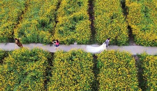 ■中秋假期3天,广东接待游客1588.7万人次。图为广州海珠湿地公园,近两万平方米的硫华菊进入花期,引来游客拍照打卡。新快报记者 夏世焱/摄