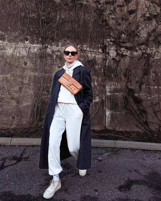 作为内搭的卫衣套装要选合身的,这样搭上外套才不会显臃肿显邋遢。 |