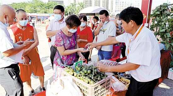 ■ 9月23日上午,2021年中国农民丰收节(阳春)在阳春市东湖广场举行开幕仪式。在活动现场,市民可以选购和品尝具有当地特色的农副产品。新快报记者 王飞/摄