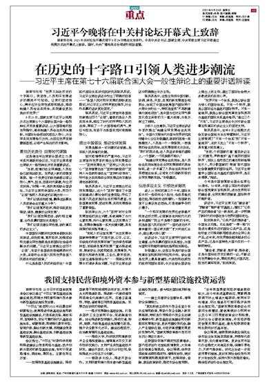 ——习近平主席在第七十六届联合国大会一般性辩论上的重要讲话解读 据新华社电 “世界又站在历史的十字路口。我坚信,人类和平发展进步的潮流不可阻挡。让我们坚定信心,携手应对全球性威胁和挑战,推