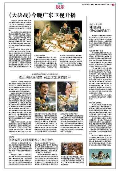 新快报讯 记者梁燕芬报道 革命历史题材电视剧《大决战》将于今晚在广东卫视“活力剧场”播出。该剧展现70多年前攸关国家前途、民族命运、人民福祉的大决战,铭记历史,礼赞英雄。 《大决战》首次以