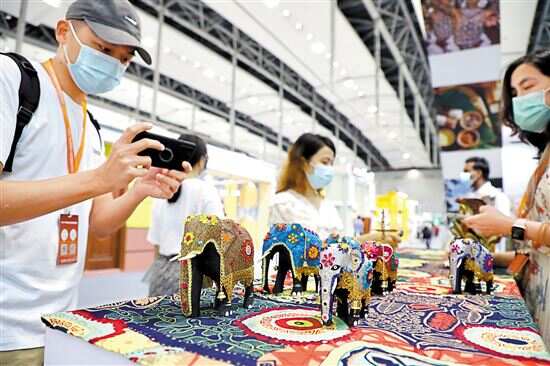■海丝博览会昨日开幕,64个国家和地区汇聚广州,超千家企业联袂登场。这是市民在斯里兰卡展区前了解当地文化产品。新快报记者 孙毅/摄