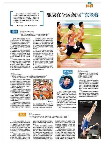 在本届陕西全运会,广东代表团中多位老将依旧是各自领域的明星,比如田径的苏炳添、刘虹,马术队的顾兵,女篮的张冬霞……他们不仅在赛场上拼搏奋进,同时也在潜移默化地感染着身边的年轻选手,传递着“敢于拼