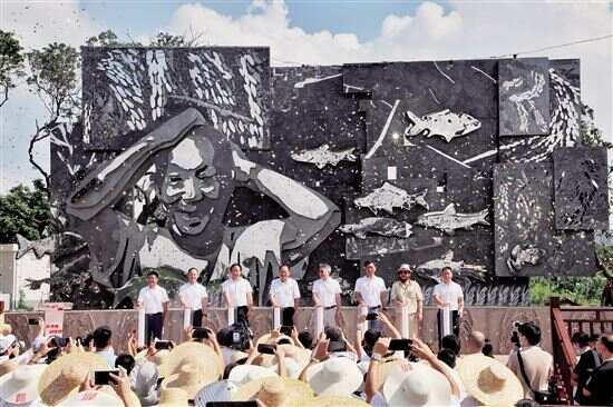新快报讯 记者李应华 李小萌 通讯员徐洁芹 范敏玲 高亮报道 9月25日,“庆丰收 感党恩”2021年中国农民丰收节黄埔区分会场系列活动在大吉沙岛隆平稻香园举行,“禾下梦”袁隆平院士雕像正式揭幕。 袁隆平院士曾与黄埔许下“稻香之约”:待到稻花飘香时,要到黄埔看看。今天,稻花飘香,袁老以另外一种方式陪伴、见证着隆平稻香园、黄埔农业的发展。 “禾下梦”雕塑由中国美术家协会雕塑艺术委员会主任、中国雕塑学会副会长、广州美术学院原院长黎明精心创作。雕塑采用铸造与锻造相结合的工艺构成,高6米、长12米,是目前国内最大的袁隆平院士雕塑。 “我想要通过这个作品把袁老关于农业的事业,他的梦想,他一生的成就体现出来。”黎明说,他挑选出来参考的画像是袁老在某一次刷新水稻产量纪录后开心的笑容。“如今雕像做好了,袁老以另外一种方式,身处他一手谋划的试验田里,看到禾苗慢慢长大,看着人们丰收的喜悦,他一定会非常开心的。” 袁隆平院士生前曾说自己有两个梦想,一个是“禾下乘凉梦”,一个是“杂交水稻覆盖全球梦”。大吉沙岛隆平稻香园和目前正加快建设的隆平院士港、隆平国际现代农业公园,是袁隆平院士生前最后一个以自己名字命名的现代农业攻关项目。“我们只有努力将隆平国际现代农业公园及院士港项目建设好,才是对袁老最好的纪念。”黄埔文化集团董事长黎学军表示,希望借助这些平台,培养更多优秀的农业人才,研发出更多优秀的水稻品种,把农业科研成果推广出去,引领国家农业科技创新发展。