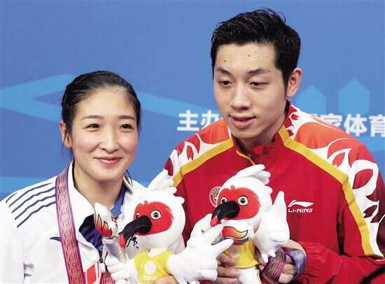 联合队组合许昕(右)/刘诗雯获得混双金牌。新华社发 |