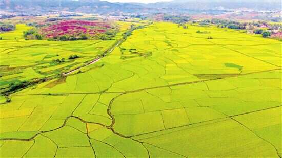 丰收季节,在广州增城区石滩镇,万亩水稻田金黄一片,田园风光无限。新快报记者 宁彪/摄