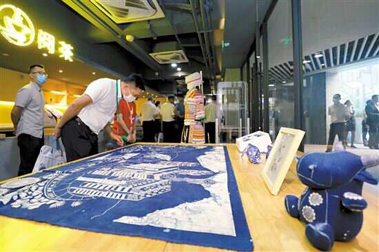 ■广州地铁在“五专”平台上展示贵州的蜡染手工画。新快报记者 龚吉林/摄 |