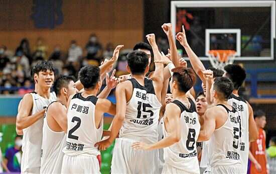 ■在第十四届全运会五人制男子19岁以下组决赛中,广东队以95比75战胜浙江队,获得金牌。新华社发 |