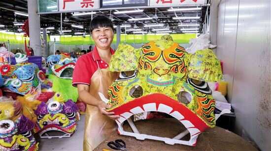 ■在楼镇村醒狮制作车间,画工精良、栩栩如生的醒狮,出自于当地村民之手。 |