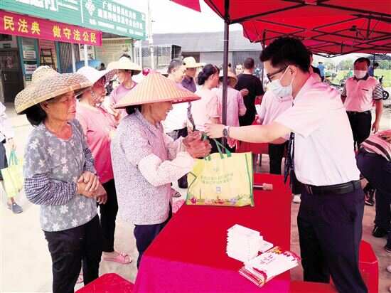 ■建行广州番禺支行向农民宣讲金融知识,并派发惠民礼包,将有温度的金融服务送到乡村。 |