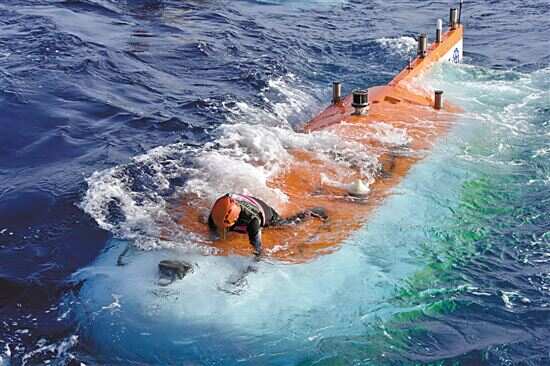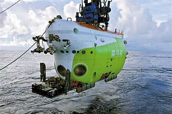 ■“奋斗者”号在西太平洋即将入水。新华社发 |