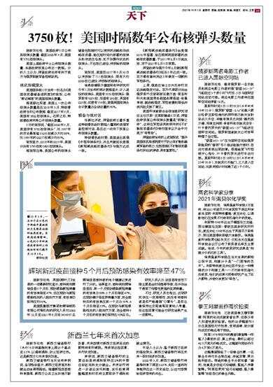 据新华社电 英国《柳叶刀》发表的一项最新研究显示,接种两剂辉瑞疫苗5个月后,预防感染新冠病毒的有效率降至47%,但在预防与新冠感染相关的入院治疗方面,有效率仍保持在约90%。 美国凯撒医