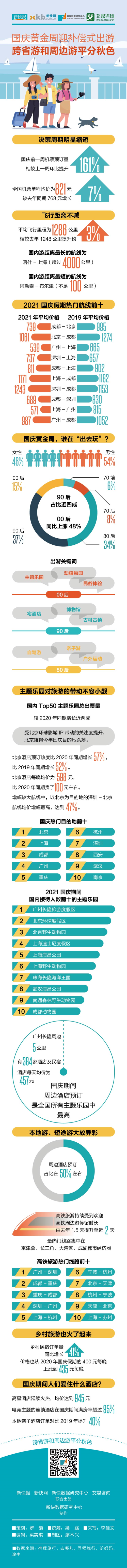 国庆黄金周消费图谱: 创新玩法推高乡村游人气 乡村振兴的步伐带动乡村游项目不断创新,游客在周边乡村也能体验沉浸、互动式的多样玩法,让乡村游也成为了这个国庆的热点之一。长三角地区,去安吉和莫干山登山戏水、游船赏竹,去天目湖泡温泉、赏竹海、住竹主题客栈成为热点;广深地区,去惠州泡私汤、去清远玩水、山地越野、采摘水果受到欢迎;京津地区,去秦皇岛、北戴河尝海鲜、玩沙子,到木兰围场、乌兰布统林海穿越、品尝满蒙特色餐备受热捧。国内各大目的地也推出了多种形式的乡村游项目,收割水稻、抓稻田鱼等农村体验,民间习俗、非遗工艺等传统文化都让习惯城市生活的游客流连忘返。 今年国庆假期,同程旅行乡村民宿订单量同比增长41%;驴妈妈平台乡村相关产品预订人次相比2020年国庆增长超过42%;去哪儿平台民宿预订量比2020年增长两成,价格也从2020年国庆假期的400元每晚,上涨到435元每晚。像北京、杭州、上海甚至黔东南地区的高端精品民宿一房难求,与2019年国庆同期相比,民宿收入增长近五成。 广州市文旅局的数据显示,国庆假期全市乡村游接待市民游客570.20万人次,同比增长31.52%,占假期接待游客总量的49.44%。从化乡村精品民宿预订率超过九成,莲麻村游客量同比增长48%,溪头旅游村的游客量是去年同期的两倍。以10月3日为例,增城乡村民宿整体入住率较去年同期提升35.3%,从化区在当天共计接待游客超过18.04万人次。 学龄少年带动本地景点热度飙升 途牛旅游网数据显示,国庆假期携儿童出游的订单占比达28%。海南、浙江、江苏、广东、上海、北京、四川、广西、华北连线、安徽是最受欢迎的亲子游目的地。 同时,受各地疫情相关规定限制,青少年在国庆假期集中于本地和周边出游,学龄少年带动了本地科普类、乐园类景点热度飙升,携程旅行的数据显示,本地学龄少年门票预订量较去年同期提升133%,带动本地相关景点热度提升219%。 随着青少年在行走课堂中求知需求的增大,研学类产品也在长假期间受到家长喜爱。国庆期间,携程游学产品中亲子户外类的活动更受消费者青睐,玩法包括露营、农事活动和骑行,销量占整体游学产品60%以上,可见,与娃一起在动手和玩乐中成长成为家长最爱。 红色旅游重温红色历史迎热潮 国庆期间,红色线路和红色景区等应景主题热度再攀新高,趁着假期带娃探访红色旧址、重温红色历史,成为不少家长的选择。携程平台显示,红色景区亲子游占比较去年同期提升30%。最热门红色旅游目的地前十分别为:北京、延安、长沙、南京、西昌、嘉兴、遵义、六安、上海、安阳。 同程旅行的数据显示,今年国庆假期红色旅游出游人次同比增长了230%。嘉兴、延安、井冈山、湘潭和大同红色旅游热度较高。热门影视剧也帮助红色旅游景点吸引了众多游客,上海四行仓库抗战纪念馆成为国庆假期最热门的红色旅游景点。 ■策划:新快报记者 罗韵 ■统筹:新快报记者 梁彧 ■采写:新快报记者 李佳文 ■制图:廖木兴 ■数据来源:携程旅行、去哪儿、同程旅行、驴妈妈、途牛,等。