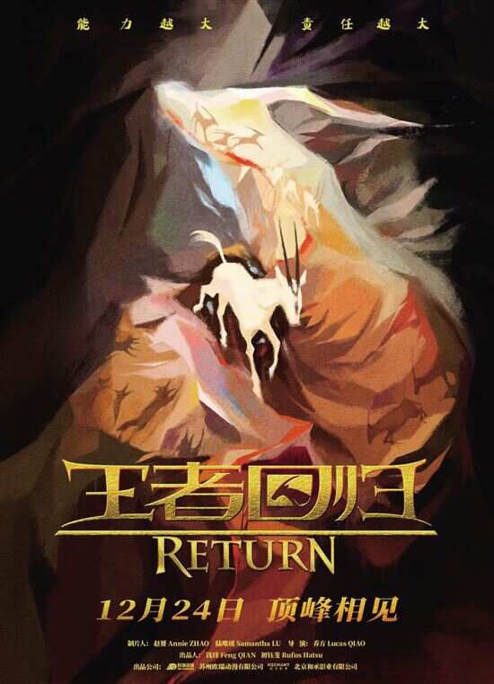 《王者回归》 新快报讯 记者聂青报道 由乔方导演执导的动画电影《王者回归》发布定档海报及预告,宣布定档12月24日上映。电影讲述了羚羊哈迪在父亲去世后,为了对抗威胁族群的狼群,踏上了自我修炼的艰难旅程。最终,哈迪在不懈努力和朋友帮助下,终于成为一名合格的头羊。 作为一部原创IP动画,《王者回归》一直以来颇受业内关注,主要原因在于其独特而珍贵的手绘风格。全片由超过500名艺术家历经五年纯手绘创作,画面细腻生动,观赏性强。而纯手绘风格在当下的国内动画行业也极度罕见,本片更可能成为中国纯手绘动画电影的封笔之作。定档海报也完整还原了影片在绘画风格上的飘逸与灵动,在视觉上将羚羊的轮廓与崎岖陡峭的岩石之路做了巧妙结合,周围深沉的压迫感与围绕在主角哈迪之间富于生命力的暖色形成鲜明对比,寓意哈迪将会闯过重重考验,实现自我蜕变,完成责任的传承。 此外,令人惊喜的是,除了手绘团队,影片的配乐团队也很“硬核”,由英国顶级管弦乐团现场录制电影配乐,着力呈现最完美的音画配合,为观众打造比肩国际水准的至臻视听享受。 制片人赵赟、陆唯瑶表示,这部电影既有着比较高的艺术创作价值,也饱含着丰富而积极的内涵,是一部具有合家欢属性,同时又兼备审美品味和价值观影响力的电影,希望大家能够在电影院感受到动画创作者的用心。