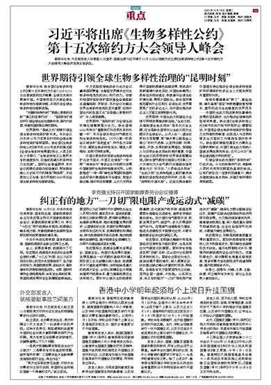 习近平将出席《生物多样性公约》第十五次缔约方大会领导人峰会